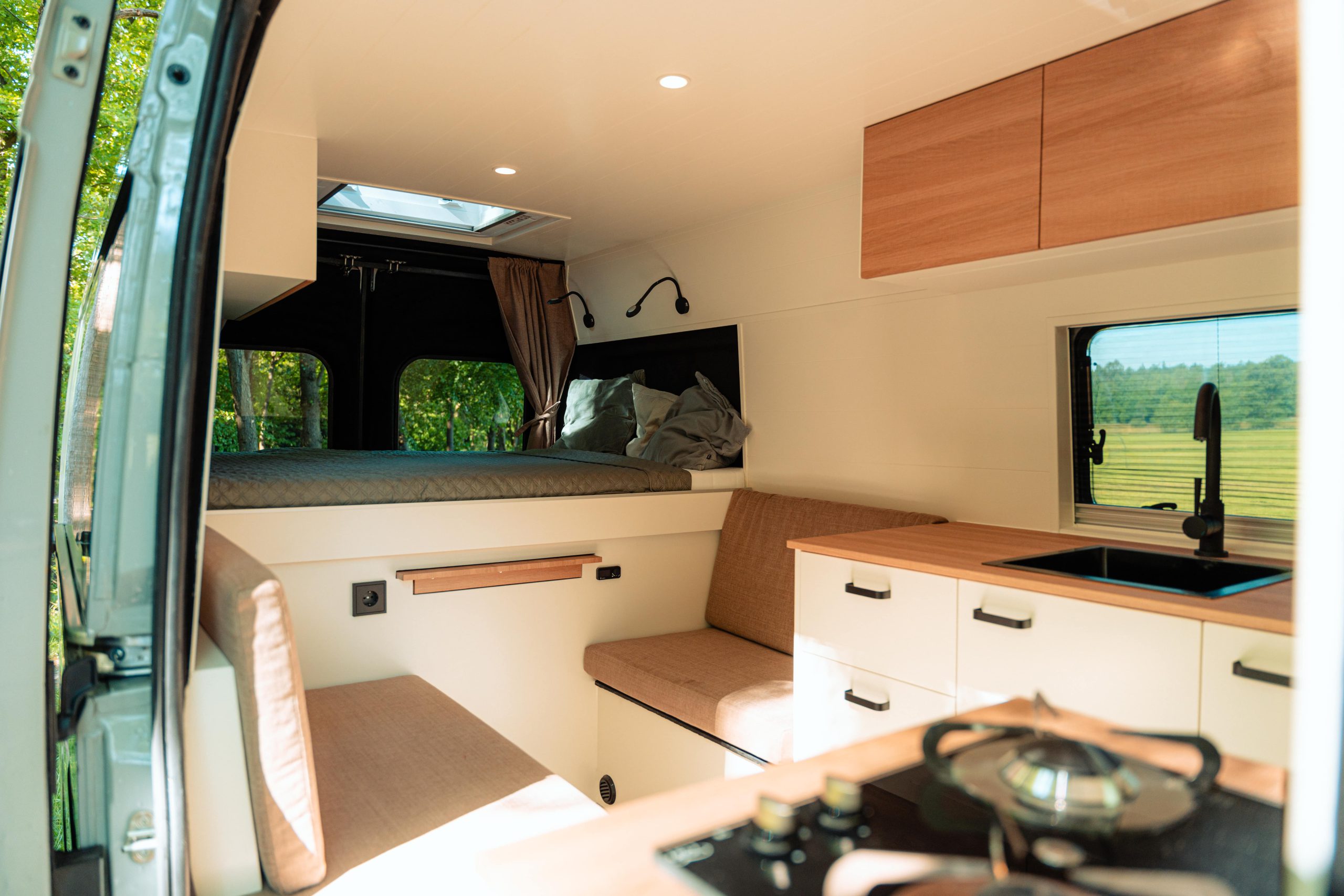 Het ontwerpen van de camper gaat bij ons verder dan het verwerken van uw wensen. Wij gaan net even dat stapje verder en proberen de camper een ware beleving te maken. Als klant bepaalt u zelf, naast uiteraard de indeling van de camper, ook de kleur van de lak van het interieur: de wanden, de kasten, keuken, etc. Tevens kunt u zelf de stof van de gordijnen en van de kussens uitzoeken bij onze leverancier. Kortom: bij ons richt u uw camper volledig zelf in zodat het uw eigen camper wordt.